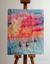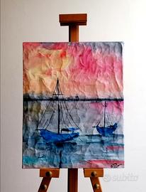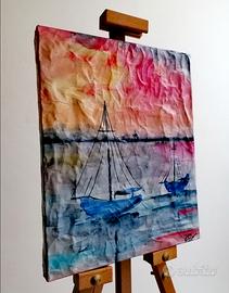 2 quadri dipinti a mano su tela, originali realizzati interamente a mano, pezzi unici. raffigurano due imbarcazioni che riposano in acque calme, immerse nei toni caldi e vibranti di un tramonto che vira dal rosa intenso all'oro. Tecnica mista su tela materica (la superficie presenta un'affascinante texture a rilievo che dona profondità e movimento al cielo). Perfetto per chi cerca un tocco di colore e serenità per la propria casa o come regalo unico per amanti del mare e dell'arte contemporanea. 15 euro l'uno 22 se li prendi entrambi Misure 30x20 cm, pronti per essere appesi. No spedizione Scrivimi pure per info o per accordi sul ritiro. Grazie ✅ Zona Aranova In alternativa previo accordo posso consegnare: ✅ Roma via Veneto (dal lunedì al venerdì ora pausa pranzo 14:00circa) ✅ parco de medici (il sabato intorno alle 17e30) ✅ Zona Casalotti valle santa ✅ Zona Cesano ✅ Nepi ✅ Civita Castellana