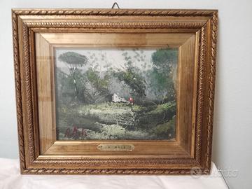 2 Quadri d'arte paesaggistica con cornice dorata decorata. Autore A. Mele.Prezzo 10 euro cadauno