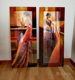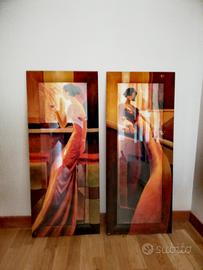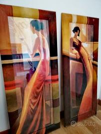 coppia di stampe d'arredo di grande formato dell'artista Keith Mallett, opera "Enigmatique". Le opere sono caratterizzate da uno stile elegante e moderno, perfette per salotti o ingressi raffinati. La particolarità di questi pezzi risiede nelle cornici in legno dipinte a mano, che riprendono i toni caldi e ambrati dell'opera stessa, rendendo ogni pezzo unico. Dimensioni: 103 x 43 cm (cad.) Materiale: Stampa su supporto rigido, cornice in legno massiccio lavorata artigianalmente. Vetro davanti. Pronti da appendere No spedizione Scrivimi pure per info o per accordi sul ritiro. Grazie Prezzo per un quadro, 30 l'uno.