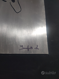 per collezionisti e amanti del genere una farfalla in lamine e dei cavalli in lamina d'alluminio d autore poggiati su foglio nero