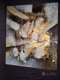 Due tele misure 49,5x59 cm, stile moderno colori oro, nero, marrone, beige. Ben tenute, in ottimo stato