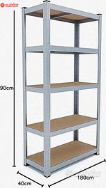 Informazioni su questo articolo 2 scaffalature "Racine" in metallo con 5 ripiani MDF Grazie alla sua alta portata di 875 kg è in grado di immagazzinare qualsiasi tipo di oggetto Struttura senza bulloni (Push-fit) che può essere montata senza l'utilizzo di attrezzi Ideale per garage, officine, cantine o magazzini Dimensioni del singolo scaffale: 180 x 90 x 40 cm (Altezza x larghezza x profondità)