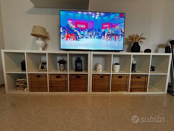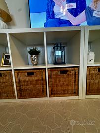 Vendo per cambio arredo 2 scaffali Kallax ikea con le seguenti misure 77x147 cm cadauno ,( affiancati si arriva alla misura di 294 cm) sono compresi anche i 6 cestini in rattan (pagati 15 euro l'uno) . Il tutto è stato acquistato al prezzo di 230 euro. Vendo a euro 85,00 un affare.