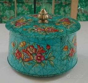 1 )scatola di latta antica boissier diametro 22 cm altezza 6 cm