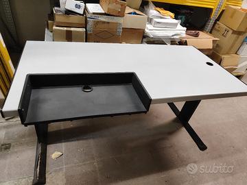 2 Scrivanie grigio per ufficio una con ripiano per tastiera e passacavi 80x160x75h spazio tastiera 64x29 l'altra scrivania con passacavo 80x120x75h entrambe usate e piedini da riverniciare