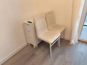 Vendo per ristrutturazione e cambio totale arredamento dell'appartamento, 2 sedie moderne imbottite con struttura in metallo bianco e rivestimento bianco.
