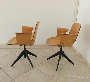 2 sedie Medea in legno piegato chiaro , da ufficio girevoli e sollevabili di Vittorio Nobili per fratelli Tagliabue originali anni 50 condizioni perfette
