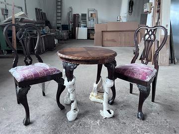 Due sedie noce restaurate di antiquariato un tavolo con piano intarsiato tutto in noce