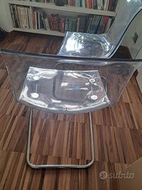 Coppia di sedie trasparenti con struttura cromata. Seduta confortevole, design moderno adatto per ogni ambiente