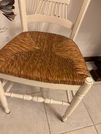 2 Sedie in legno, impagliate, colore bianco.