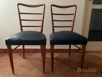 Sedie in legno, con rivestimento carta da zucchero come nuovo con leggera scoloritura in una delle due (come visibile in foto). Ottimo stato