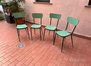 Set di sedie in formica Vintage anni 60’ con seduta e schienale verde acqua e struttura in ferro verniciato nero e gambe a spillo