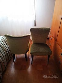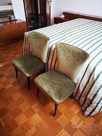 2 sedie vintage in velluto verde, tipiche anni '50/'60. condizioni buone. TRASPORTO A CARICO VOSTRO PREZZO CONTRATTABILE