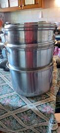 due set di batterie da cucina in acciaio inox 18/10 una è della cookomatic senza doppio fondo ,altra ha invece doppio fondo . Ritiro in sede a vostro carico.