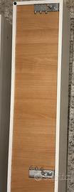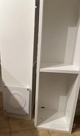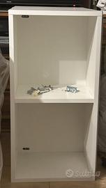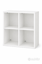 Vendo 2 distinte librerie da parete in legno bianche: la prima è una libreria quadrata costituita da 2 mobili uguali da montare affiancati o sovrapposti di altezza 80 cm, larghezza 40 cm e profondità 32 cm l'una, con scompartimenti quadrati di 36x36 cm e profondi 30 cm. La seconda è costituita da 2 librerie lunghe orizzontali sovrapponibili e fissabili a parete (ma anche posizionabili a terra) di altezza 200 cm, larghezza 29,5 cm e profondità 26,5 cm con 4 vani da 48x25,5 cm e profondità di 24,5 cm. Le librerie si fissano entrambe tramite cerniere e viti fornite, che possiedono inoltre delle coperture in plastica per nascondere i punti di fissaggio. Sulla parte bassa della libreria orizzontale è, inoltre, presente una lampada molto luminosa, che è possibile connettere direttamene ad un interruttore. I 4 mobili possono essere venduti separatamente accordandoci privatamente e il prezzo è trattabile.