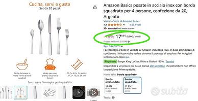 Vendo 2 (due) set di posate in acciaio con bordo quadrato Amazon Basics, con 20 pezzi ciascuno. Codice del prodotto: 192233043395. Prodotti nuovi, ancora nelle loro confezioni originali mai aperte.