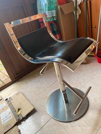 2 Sgabelli design acciaio e vera pelle