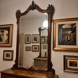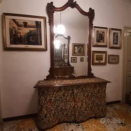 su due mobili sempre in noce uno più antico con tessuto gobelin