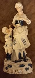 2 bellissime statue in ceramica di Capodimonte . La statua della donna dovrebbe avere sul braccio sinistro una colomba bianca ma si è staccata e si è rotta un'ala (come visibile in foto). Per il resto sono in ottime condizioni. Belle come soprammobili. Dimensioni h33, p11, l 14