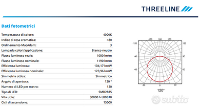 •Resa Cromatica (CRI): Solitamente i prodotti Threeline di questa serie vantano un CRI > 80 o > 90, garantendo che i colori degli oggetti illuminati appaiano naturali e vividi.