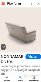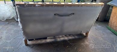 strutture divani NonnaMaria tre e due posti Flaxform in legno, cinghie in ottimo stato con piedini posteriori in faggio e ruote sul davanti, maniglione in acciaio dietro lo schienale