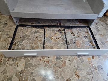 Vendesi 2 strutture letto singolo (1 principale e 1 a cassettone/scomparsa) di colore grigio e bianco come da foto.