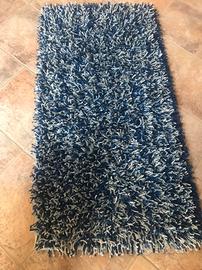 Vendo coppia di tappeti bagno con frange misure 125X63 colore blu e bianco. Ottimo stato.