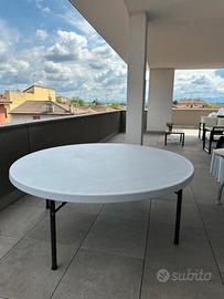 2 tavoli da catering grigio chiaro in resina com piedi in ferro grigio scuro