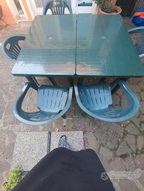 vendesi 2 tavoli rettangolari da giardino smontabili con 5 sedie coordinate.