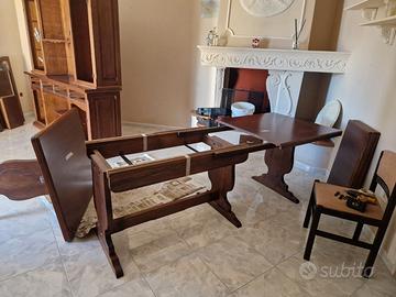 - Un tavolo allungabile in legno massello , cm 180 piu 4 pezzi da 45 cm fino a lunghezza massima 3.60 cm con 6 sedie 450.- Euro .