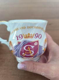 2 tazze in porcellana senza piattino celebrative famiglia reale inglese