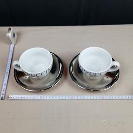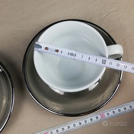 2 tazze da cappuccino con piattino argento (smaltato)