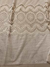 due tende bianche con ricamo di pizzo sul fondo - Misure: 290 lunghezza x 270 larghezza - da lavare e stirare
