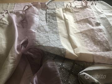 2 tende nuove con etichetta Maisonsdumonde modello Antoniette colore beige e rosa. Dimensioni di ogni tenda: 105x 250. La tenda alterna parti in toulle-organza a parti in cotone per un effetto più scenografico. Le stringhette sono già predisposte per appenderle ad un sostegno. 43 euro è il prezzo per entrambe le tende