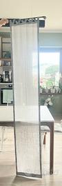 Vendo per cambio infissi,coppia di tendine per porta finestra, Con bretelline superiori incrociate come da foto,bordo inferiore e laterale cuciti a mano Confezionate artigianalmente a mano mai usate. Misure larghezza 36 cm altezza 205 cm.