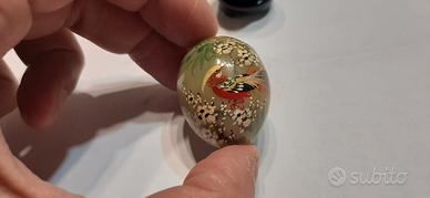 2 uova giada cinese nefrite dipinte a mano ,vintage 1980,da collezione, bellissime ,con loro supporto come nuove .pezzi unici in quanto dipinte a mano .No perditempo, sono da collezione.