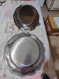vendo 2 vassoi in acciaio inox, ottime condizioni con qualche piccolo graffio di cui uno rotondo e l'altro ovale. misure ovale 44,5X32 cm mentre quello rotondo cm 34,5 di diametro.