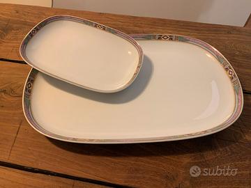 Vendo 2 vassoi in porcellana di Baviera. Un vassoio è di media dimensione, L36cm x L24cm e l'altro è di piccola dimensione, L21cm x L14cm. Non hanno difetti, sono di forma rettangolare con angoli smussati, di colore bianco con decorazioni nei bordi. Sono nuovi, mai usati!
