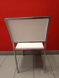Sedie in plastica bianca dura con eleganti rifiniture in acciaio. Impilabili Prezzo inserito cadauno.
