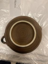 26 piatti con piccolo beccuccio e decorati al centro, qualità della terracotta molto resistente. Misura 10/13cm
