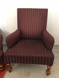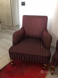 Poltroncine antiche con diversa seduta con un buchino sulla tappezzeria e una zampa da ridorare.
