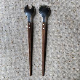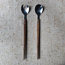 2x posate per insalata, Vintage, 70, Acciaio, Teak