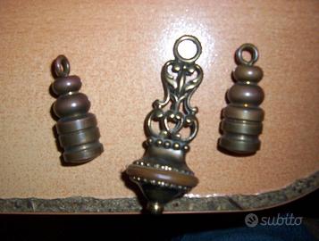 3 ANTICHI TENDICORDA PESI IN OTTONE MASSICCIO PER TENDE, MISURE I PICCOLI 5 CM IL GRANDE 10 CM