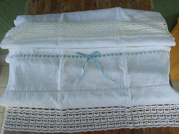 3 asciugamani nuovi in puro lino e bordi uncinetto