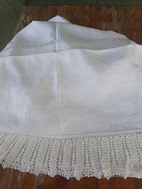 Vendo 3 asciugamani in puro lino bianco con ricami e bordi all'uncinetto realizzati a mano. Misure: circa 120x70 + bordi di circa 12 cm da entrambi i lati. Nuovi, mai utilizzati. Vendibili anche singolarmente.