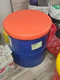 Vendo sgabelli realizzati da barili metallici riciclati con comoda seduta imbottita rivestita in ecopelle (colori vari: verde/giallo, giallo/rosso, blu/arancio — come da foto).