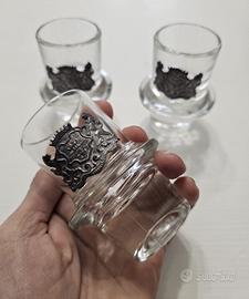 3 BICCHIERI VINTAGE IN VETRO CON STEMMA IN PELTRO