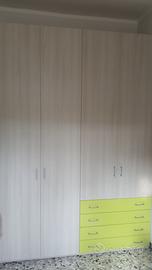 Segue un armadio 1 comodino 1 letto con contenitore scrivania e libreria