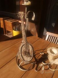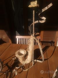 Tris di candelabro a tema musicale in ferro battuto invecchiato