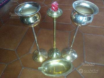 3 Candelieri 1 posacenere Ottone lucidi circa 27cm